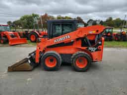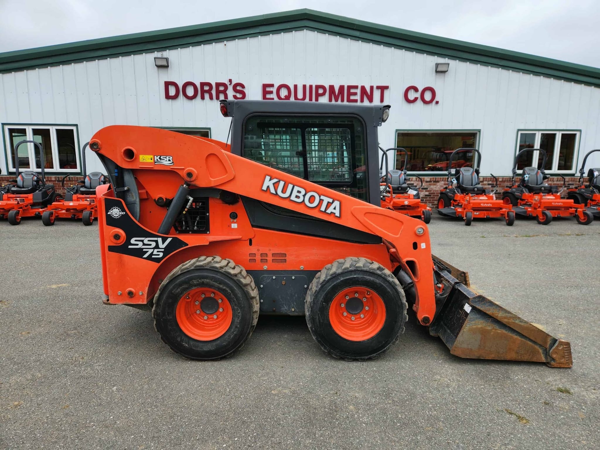 2019 Kubota SSV75 skid steer with 74 HP turbocharged 4 cylinder Kubota diesel engine, pilot control, and 8,422 lb operating weight. 30.4 gpm high flow hydraulics. 5,380 lb tipping load and vertical lift path. Enclosed cab with heat, A/C, and radio. Two speed travel and Kubota Shockless Ride that smooths out the ride over rough terrain to reduce fatigue and bucket spillage. Hydraulic quick coupler. 505 hours. $40,000+tax.