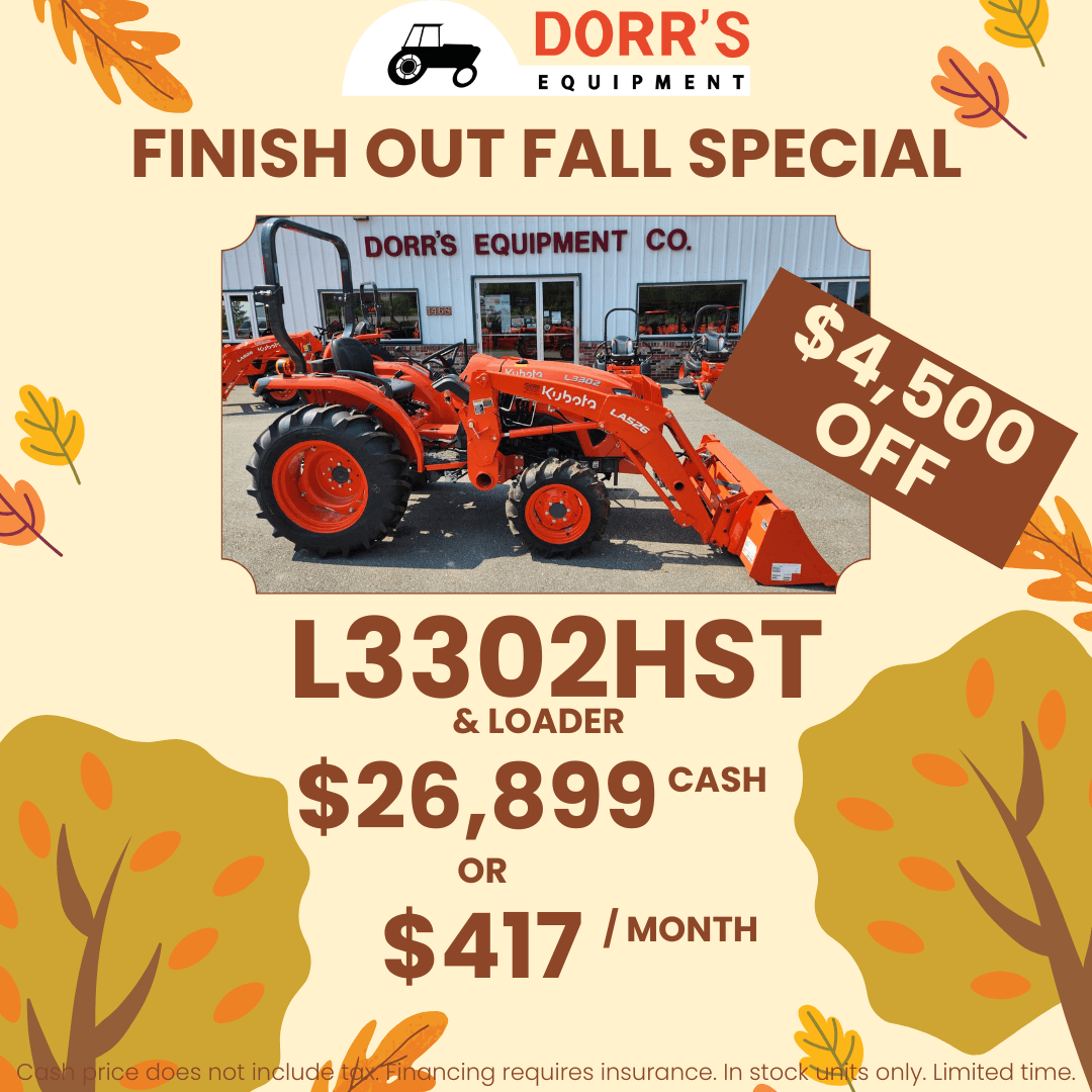 $26,899 cash or $417 per month after $4,500 off. Save even more with $800 rebate on select snow implements and attachments. Contact us for details!