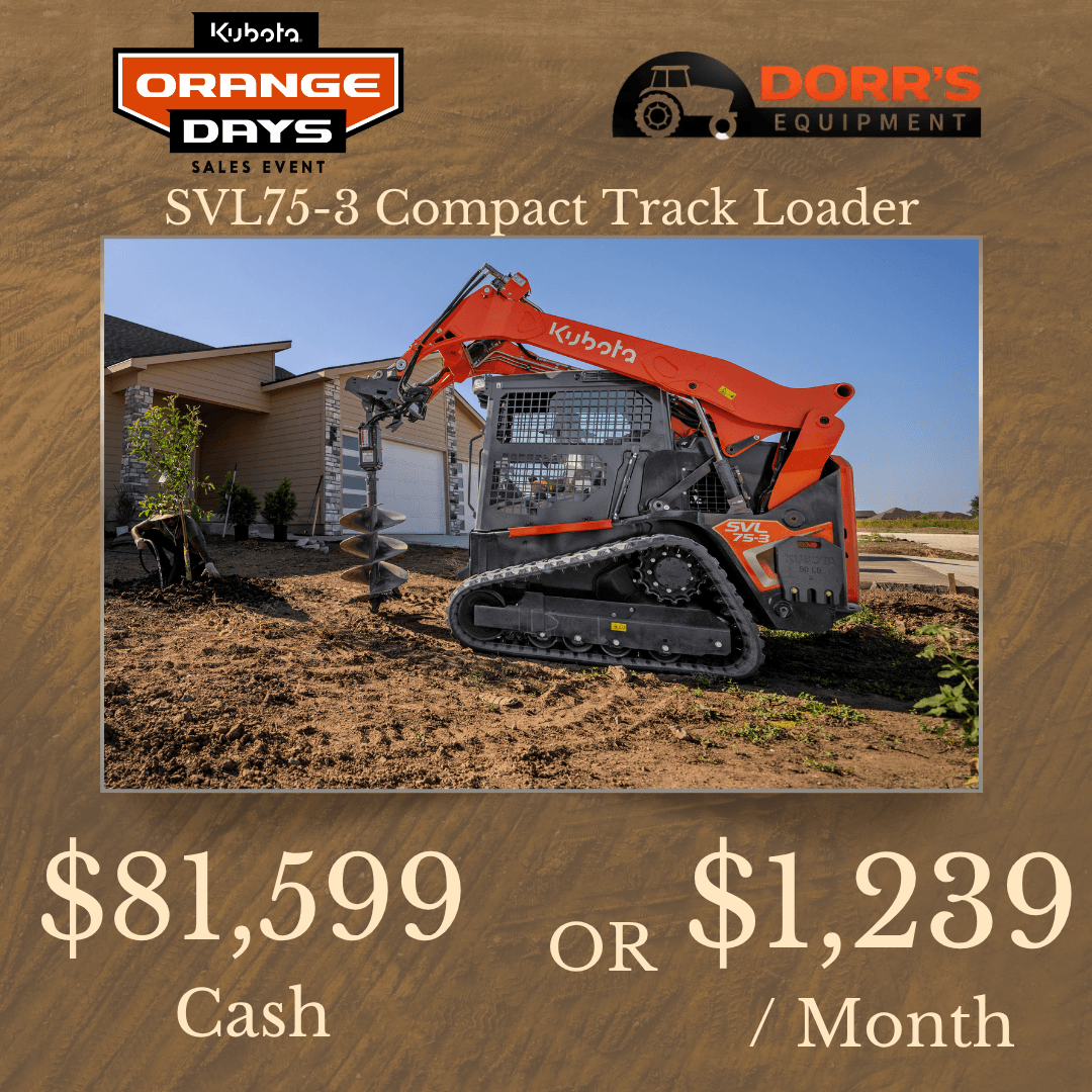 Equipment may be pictured with optional features or attachments. Cash price does not include tax. Financing is available to qualified buyers and is subject to approval. Payment estimate based on 4.99% for 84 months. Insurance is required for financing and not included in payment estimate. Special applies to select stock numbers only. Limited time only.